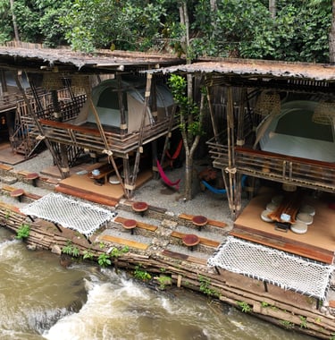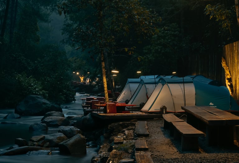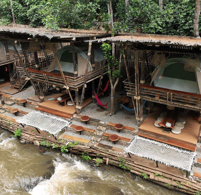 Pengalaman unik berkemah pada tepi sungai, dengan perlengkapan yang lengkap, termasuk tenda, matras, kantong tidur & sarapan. Menjadikan liburan anda praktis dan menyenangkan.