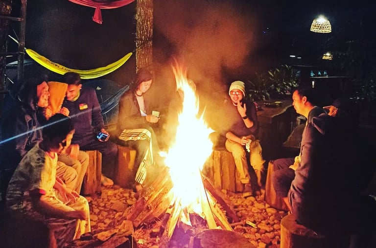 Nikmati malam yang hangat di dekat api unggun di bawah bintang-bintang. Bagikan cerita, tawa, dan kebersamaan di tengah alam untuk momen berkemah yang tak terlupakan.