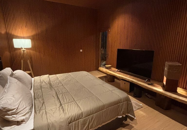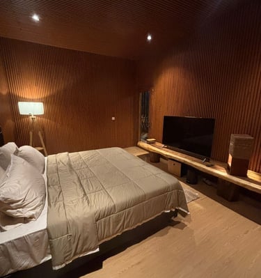 For a different vibe from tents, Pineus Tilu Cabin provides a cozy and modern stay with the warmth of home, set in the middle of the serene pine forest.