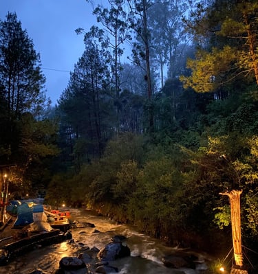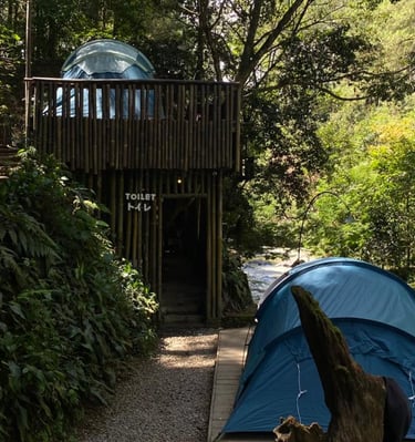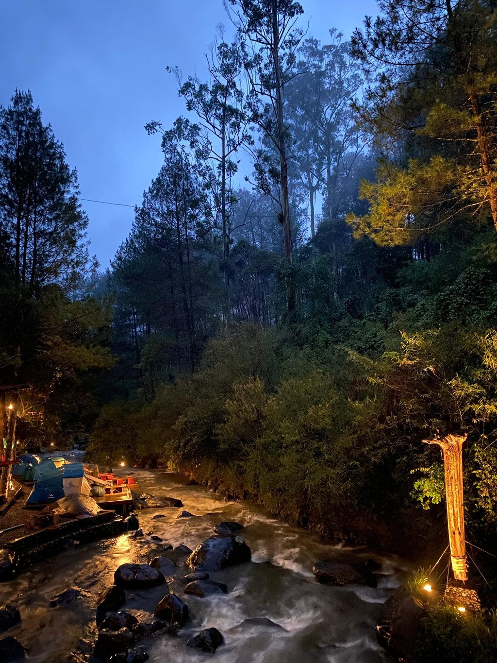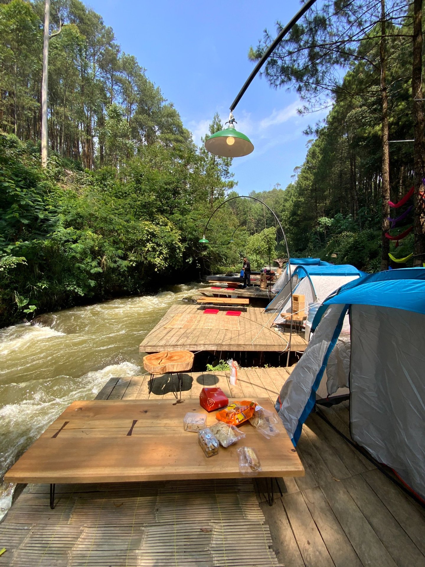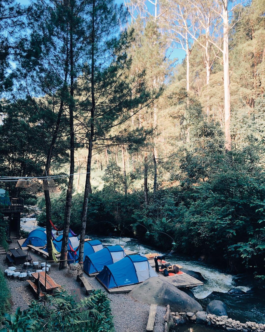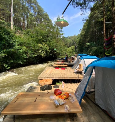 Lakukan reservasi untuk merasakan pengalaman glamping di tengah hutan pinus dan indahnya Sungai Palayangan